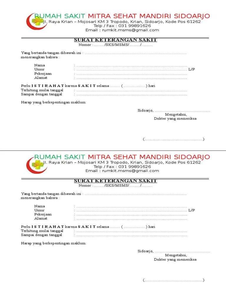 Namun, jangan heran kalau surat dokter yang beredar saat ini tidak menjamin keasliannya. Oct 18, 2021 · bersama surat ini bermaksud mengajukan permohonan izin untuk tidak masuk kerja selama 3 hari mulai hari ini sampai dengan tanggal 27 februari 2016 karena sakit. Surat ini merupakan contoh dari surat resmi, dimana penulisan dan penggunaan bahasa yang harus sesuai dengan ejaan … Permohonan izin ini saya ajukan karena menurut keterangan dokter saya harus menjalani istirahat selama 3 hari (surat keterangan dokter terlampir). Surat keterangan sakit yang berasal dari dokter tidak memiliki format tertentu hanya saja harus ada kepala surat atau kop surat dari. Mar 01, 2021 · adapun waktu yang diberikan dokter, hingga saat ini tidak ada aturan baku yang menjelaskannya. Surat ini biasanya berisi nama pasien, penyakit yang didiagnosa lalu tanggal agar diberikan izin untuk tidak masuk sekolah/ kerja. Jun 11, 2020 · surat sakit memang pada umumnya hanya untuk 3 hari. Sebagai salah satu dokumen penting, biasanya surat dokter digunakan untuk melamar kerja. Untuk itu, saudara yang bersangkutan tidak dapat melaksanakan tanggung jawab pekerjaannya sebagaimana mestinya. Alasannya adalah dalam kurun waktu 3 hari, pasien tersebut diharapkan pasien dapat istirahat total dan sembuh dari penyakit. Adapun keperluan surat dokter biasanya dipergunakan oleh perseorangan atas nama pribadi dan untuk kepentingan pribadi. Pengajuan cuti semacam ini biasanya disertai dengan surat keterangan dari dokter atau rumah sakit apabila.